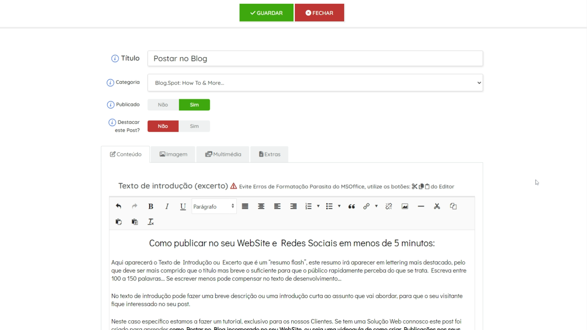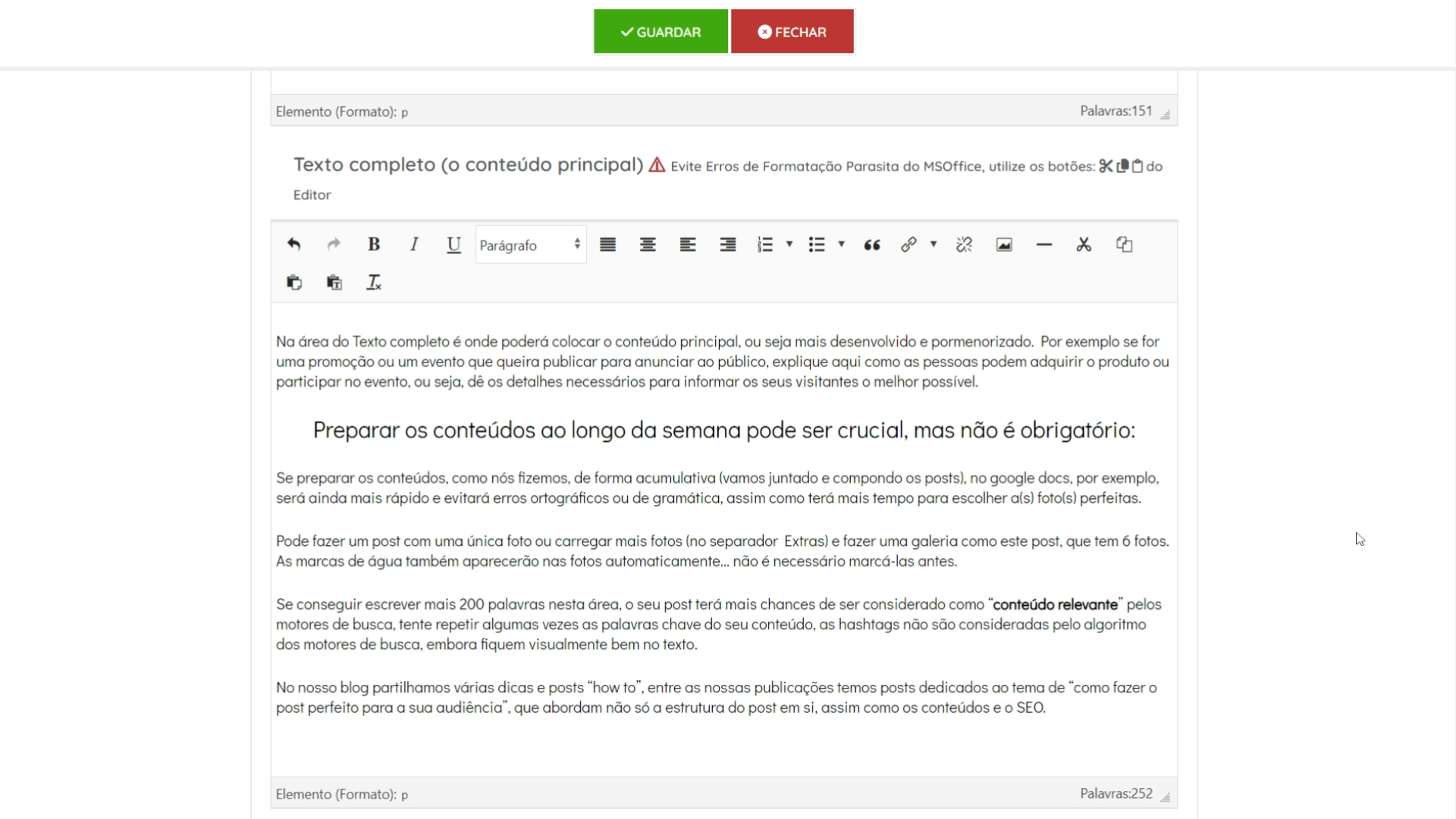 Na área do Texto completo é onde poderá colocar o conteúdo principal, ou seja mais desenvolvido e pormenorizado. Por exemplo se for uma promoção ou um evento que queira publicar para anunciar ao público, explique aqui como as pessoas podem adquirir o produto ou participar no evento, ou seja, dê os detalhes necessários para informar os seus visitantes o melhor possível.